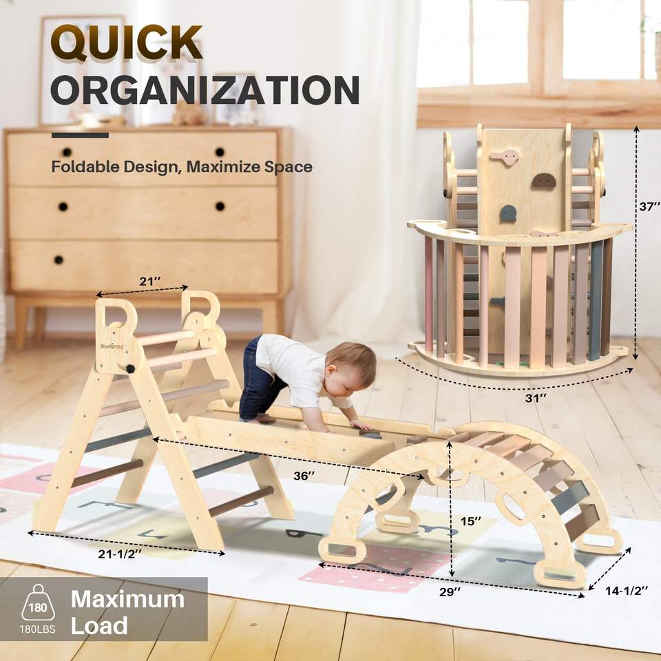 Triangle ensemble 7in1 pliable bébé escalade jouets en bois Montessori enfants escalade ensemble avec arc et rampe et échelle bébé enfants meubles
