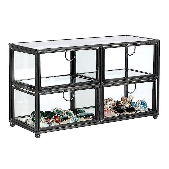 Triangle forme cosmétiques boîte de rangement bijoux rouge à lèvres métal et verre boîte décorative organisateur de stockage à la main