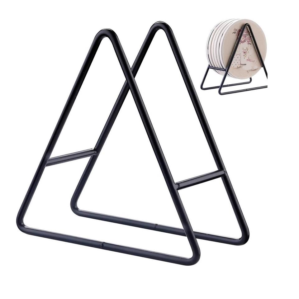 Support de sous-verre en forme de triangle pour décoration de table de cuisine, support de sous-verre en métal au design unique avec couleur noire à bas prix