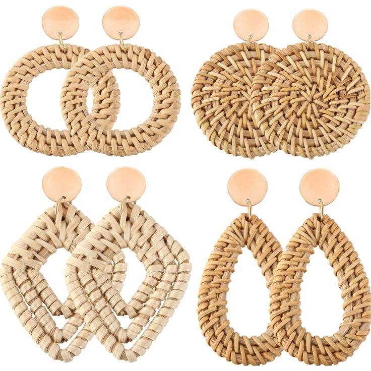 Boucles d'oreilles pendantes en rotin tressé triangulaires en laiton, faites à la main, style bohème naturel, bijoux pour enfants pour anniversaire