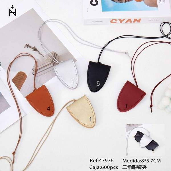 Clip triangulaire pour lunettes, 8x5,7 cm, sangle de cou en cuir pour support de lunettes