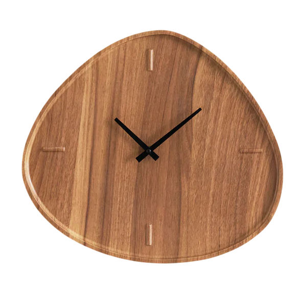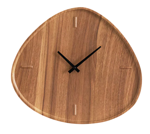 Horloge murale triangulaire en bois avec marqueurs sculptés minimalistes, décoration rustique moderne pour salon, bureau et intérieurs élégants