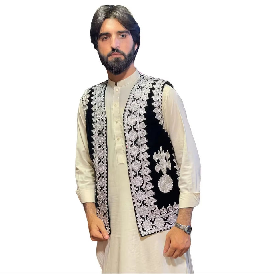 Tribal Design Afghani Mens Casual Breathable Autumn Waistcoat with Colorful Embroidery for Weddings & Cultural Celebrations