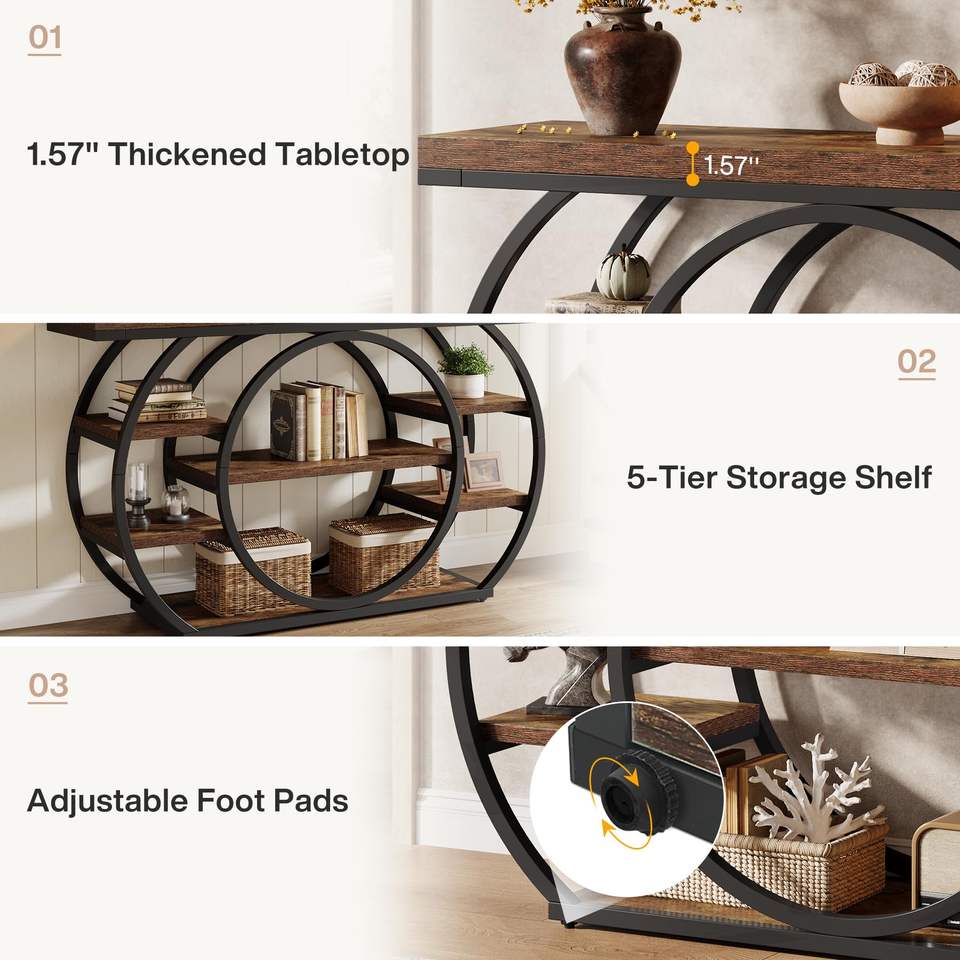 Table console industrielle Tribesigns de 120 cm, 5 niveaux, structure en métal, étroite, pour entrée, couloir, derrière le canapé, salon, brun rustique