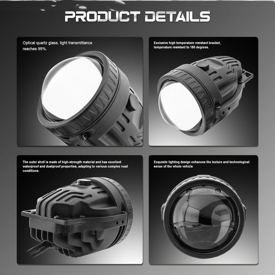 Feux antibrouillard Bi-LED tricolores de 3 pouces, faisceau haut et bas, pour Renault Clio Megane Nissan Navara Toyota Premio Hilux