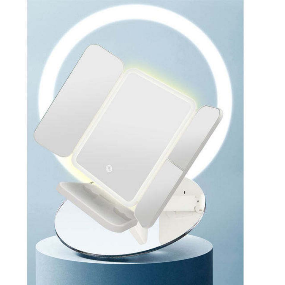 Miroir de maquillage pliable avec lumière LED personnalisée, grossissement 1X/2X/3X, miroir de maquillage rechargeable, miroir de vanité