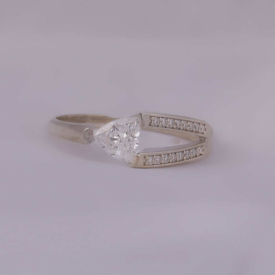 Bague de fiançailles à tige fendue sur un côté coupé en trillion minuscule laboratoire cultivé 14KT or massif 0.5-0.75 TCW pavé réglage certificat IGI