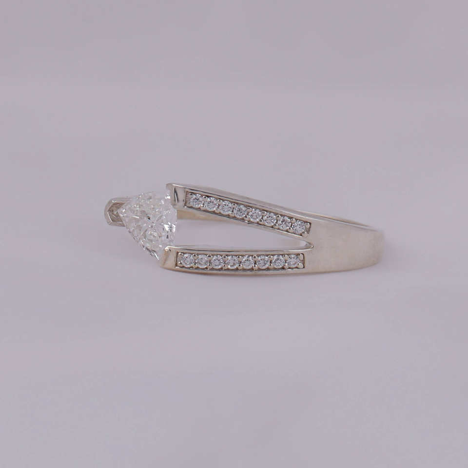 Bague de fiançailles à tige fendue à un côté taillé en trillion avec minuscule diamant cultivé en laboratoire 18KT or massif IGI certifié pavé serti