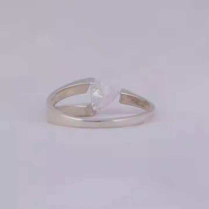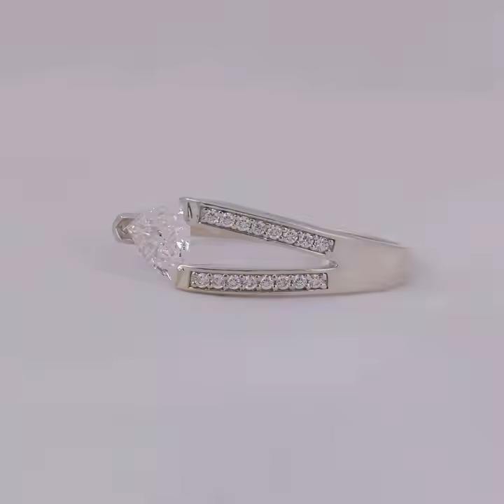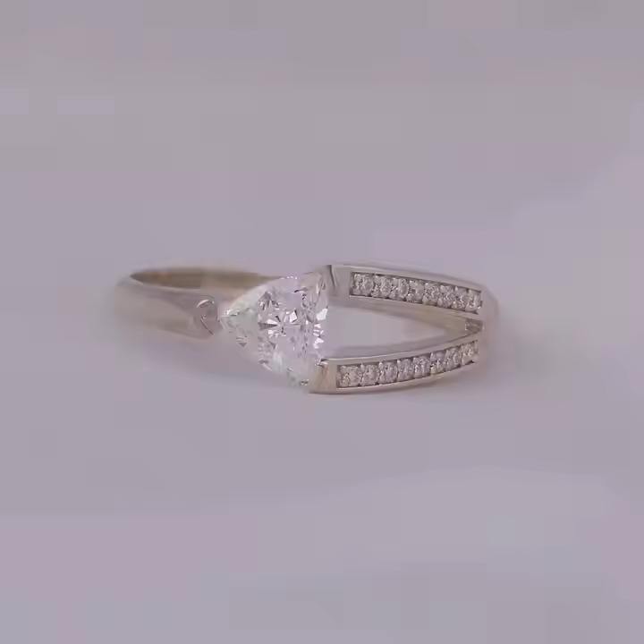 Bague de fiançailles à tige fendue sur un côté taillé en trillion avec un petit diamant rond cultivé en laboratoire en or massif 10K/14K/ 18K pour les fiançailles