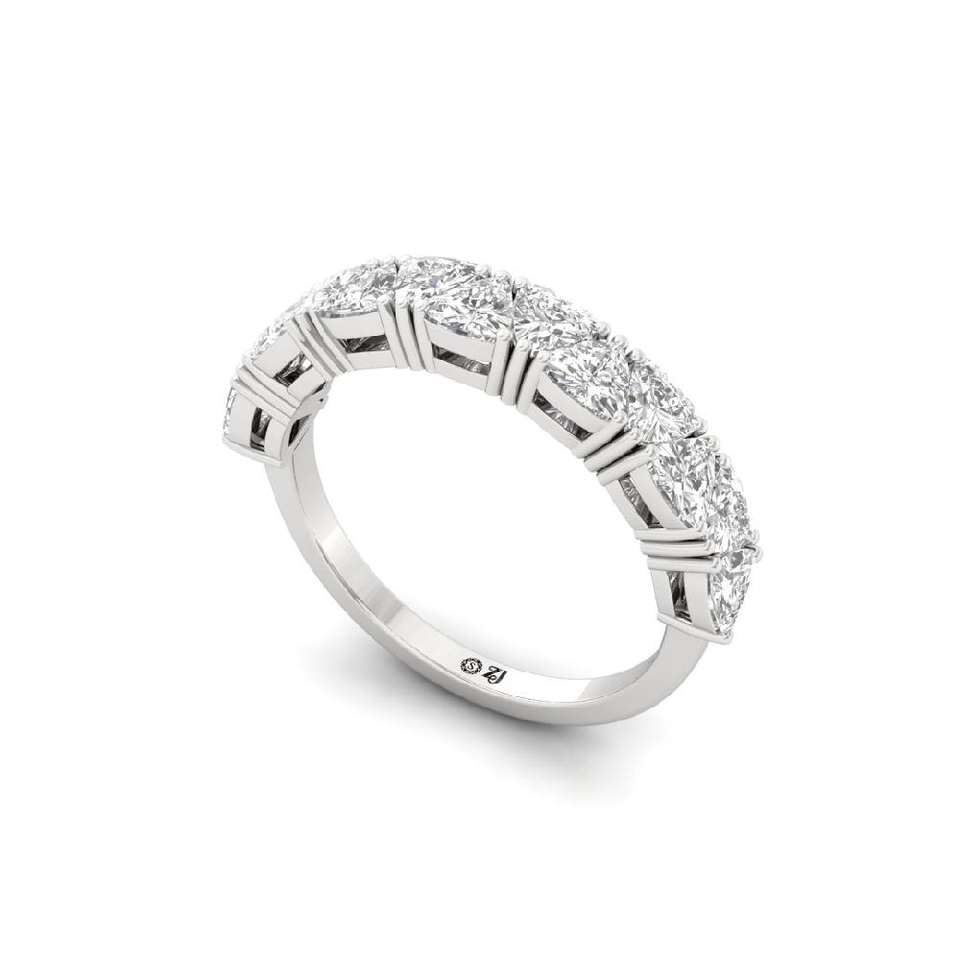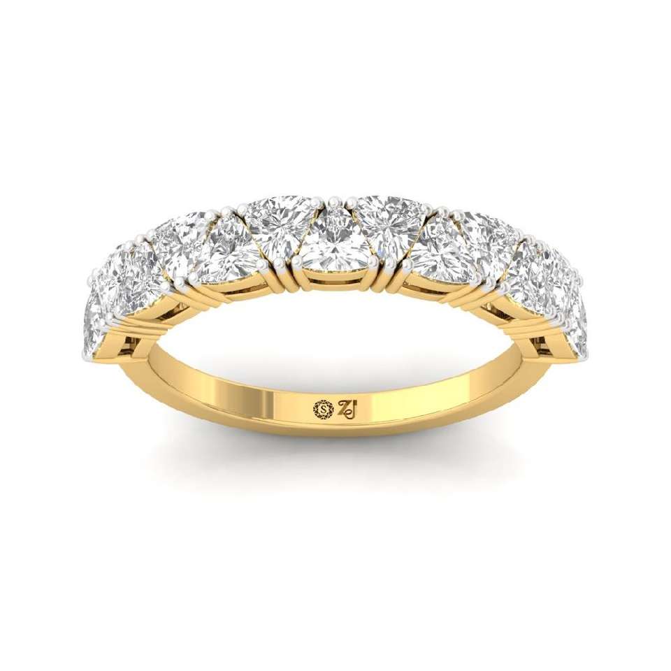 Bague demi-éternité en diamant cultivé en laboratoire Trillion en argent et or, élégante alliance de mariage et d'anniversaire pour femme