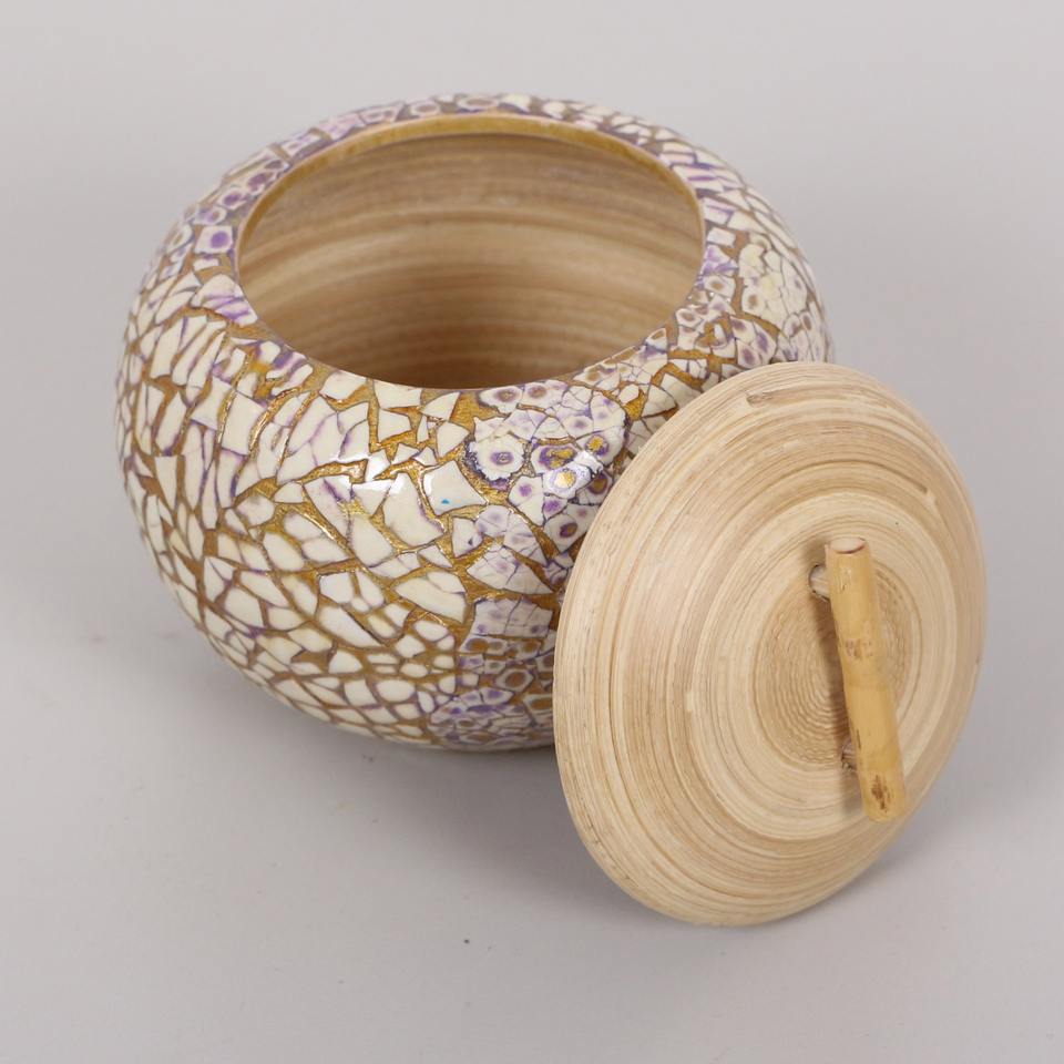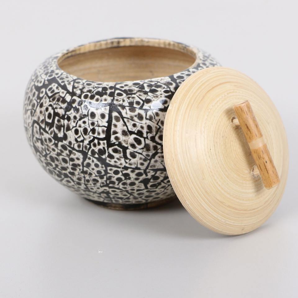 Trinket jar and jewelry box round spun coiled bamboo lidded jars personalized logo accept