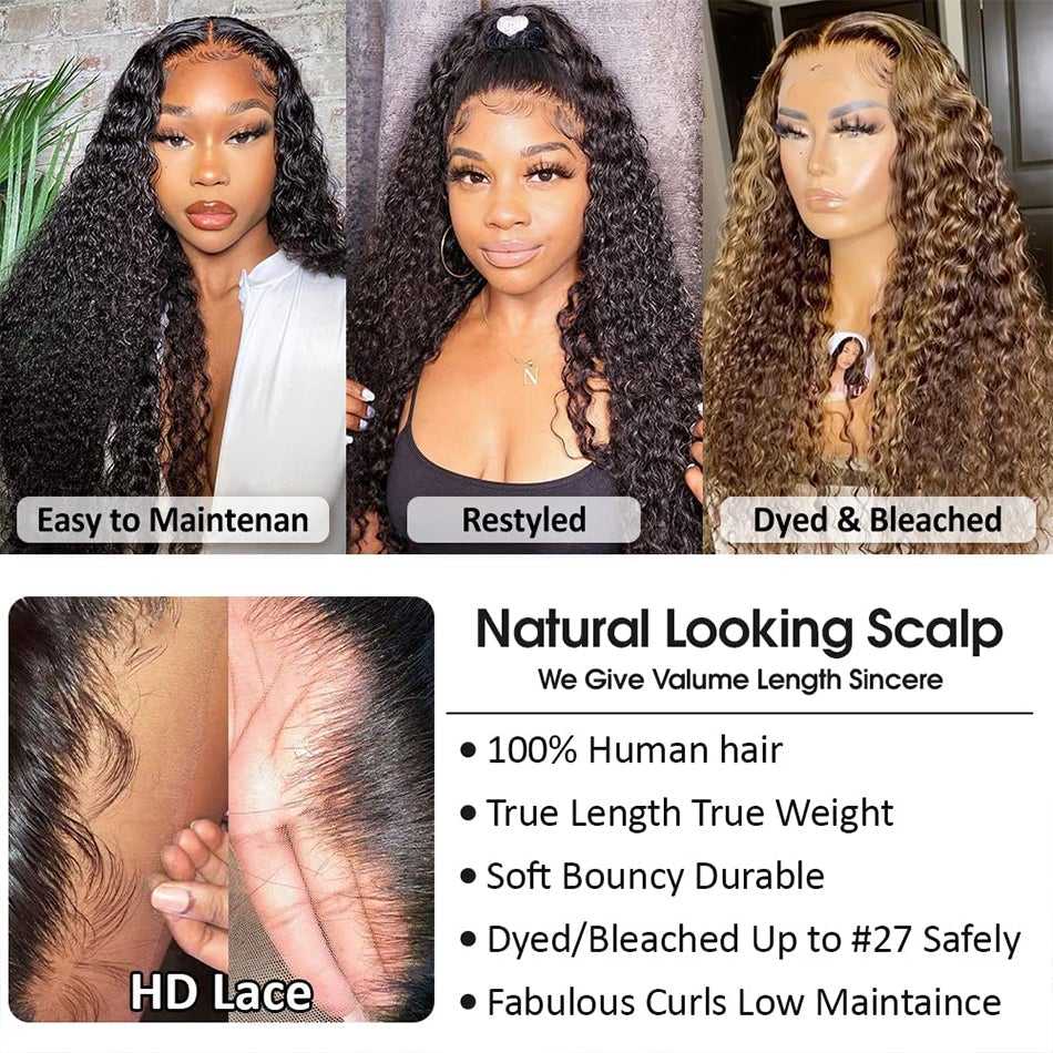 Trio de perruques en cheveux péruviens lâches et profonds de 30 à 40 pouces, couleur ombrée avec racines foncées, mèches colorées, extensions de cheveux bouclés et perruques pour femmes