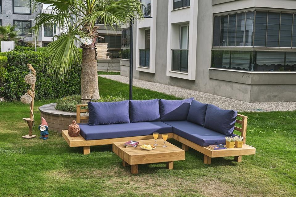 Ensemble de sièges d'angle en bois pour jardin extérieur, design moderne en forme de L, confort avec un savoir-faire de qualité supérieure et une qualité exceptionnelle