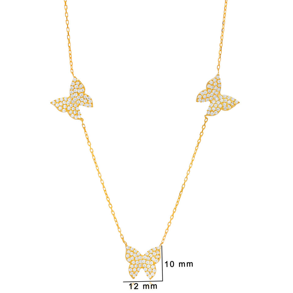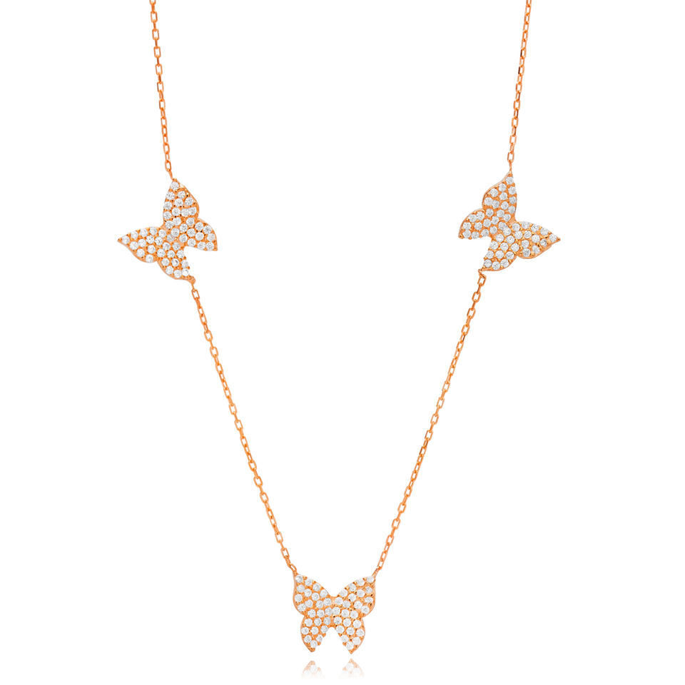 Collier en pierre de Zircon brillant avec motif Animal à Triple papillon, fait à la main, bijoux en argent Sterling 925