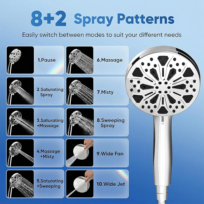 Douche à main multifonctionnelle à triple filtration haute pression, écologique et économe en eau, avec robinet pressurisé pour salle de bain
