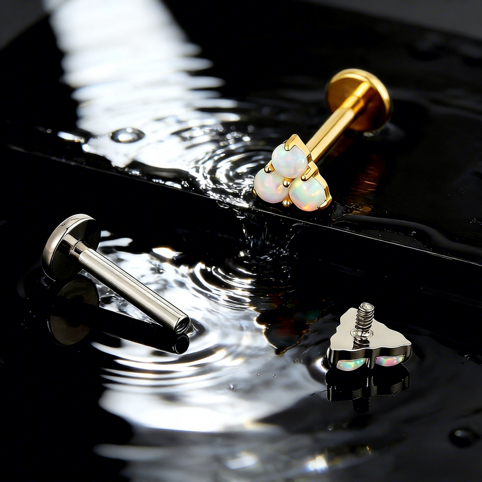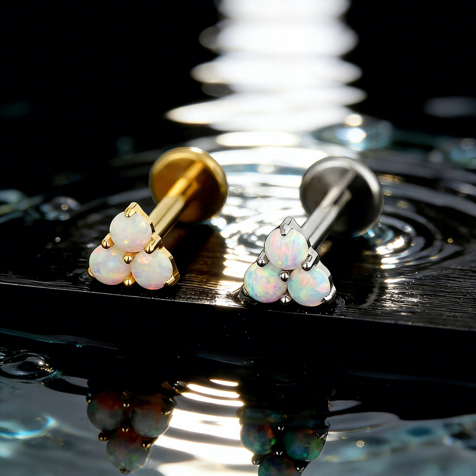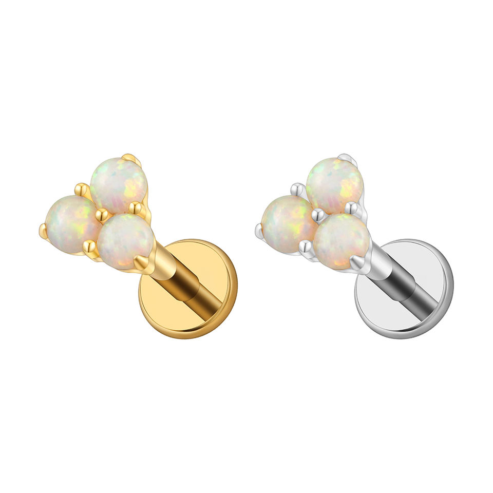 Boucles d'oreilles en opale florale triple, design luxueux, mini, en titane ASTM F136, pour piercing au lèvre, au cartilage, pour un usage quotidien