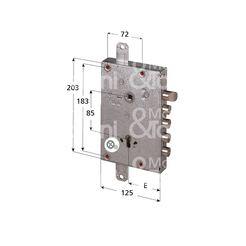 Serrure à triple engrenage pour portes blindées avec cylindre, loquet réversible commandé par panneau de commande, 2 verrous