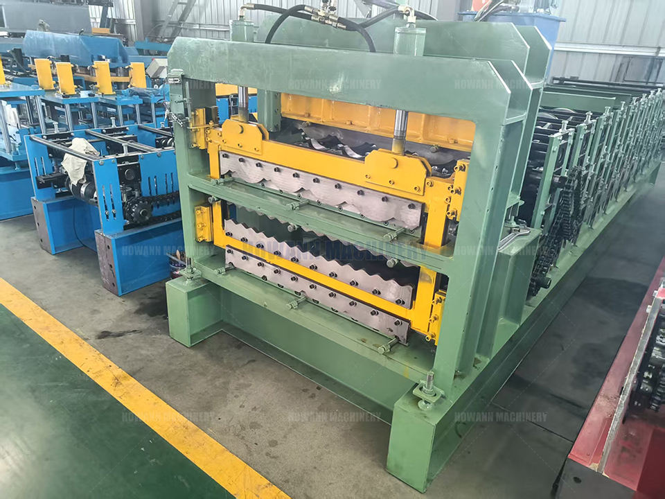 Feuilles ondulées en acier de toiture de triple couche faisant à machine le PLC automatique de vitesse a commandé la capacité élevée Chine