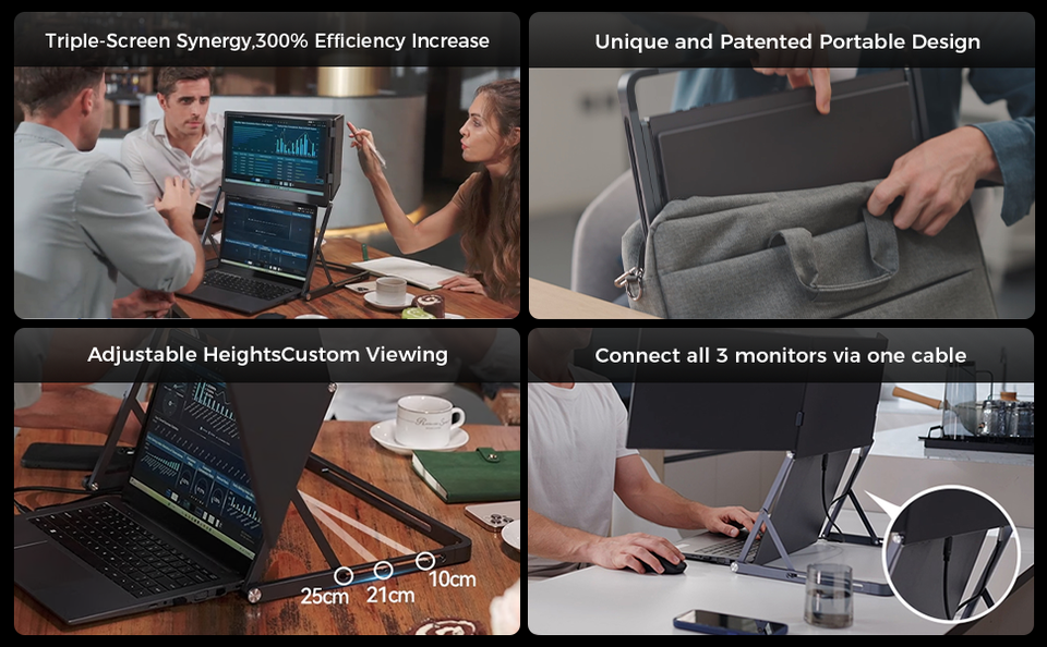 Moniteur à triple écran 15.6 ''FHD 1080P IPS écran Ultra-mince HDMI/USB-C moniteur Portable Plug-Play pour ordinateur portable Mac Win Android
