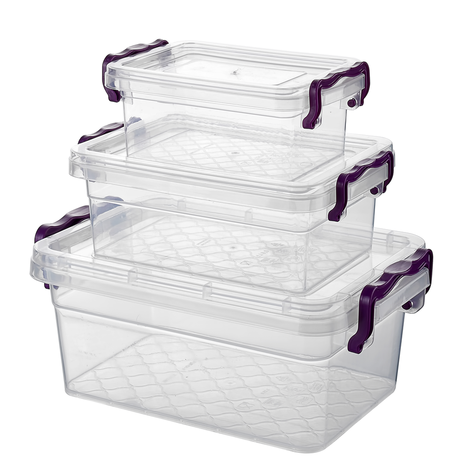 Ensemble de 3 boîtes de rangement rectangulaires en plastique 300ml 600ml 1250ml Contenants durables pour aliments Empilables Gain de place Utilisation en cuisine