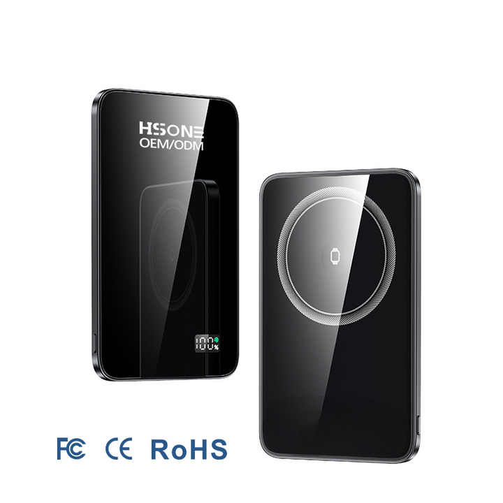 Support de téléphone, de montre et d'écouteurs sans fil trois-en-un avec écran LED, design portable, module de charge magnétique 20W, batterie externe en aluminium