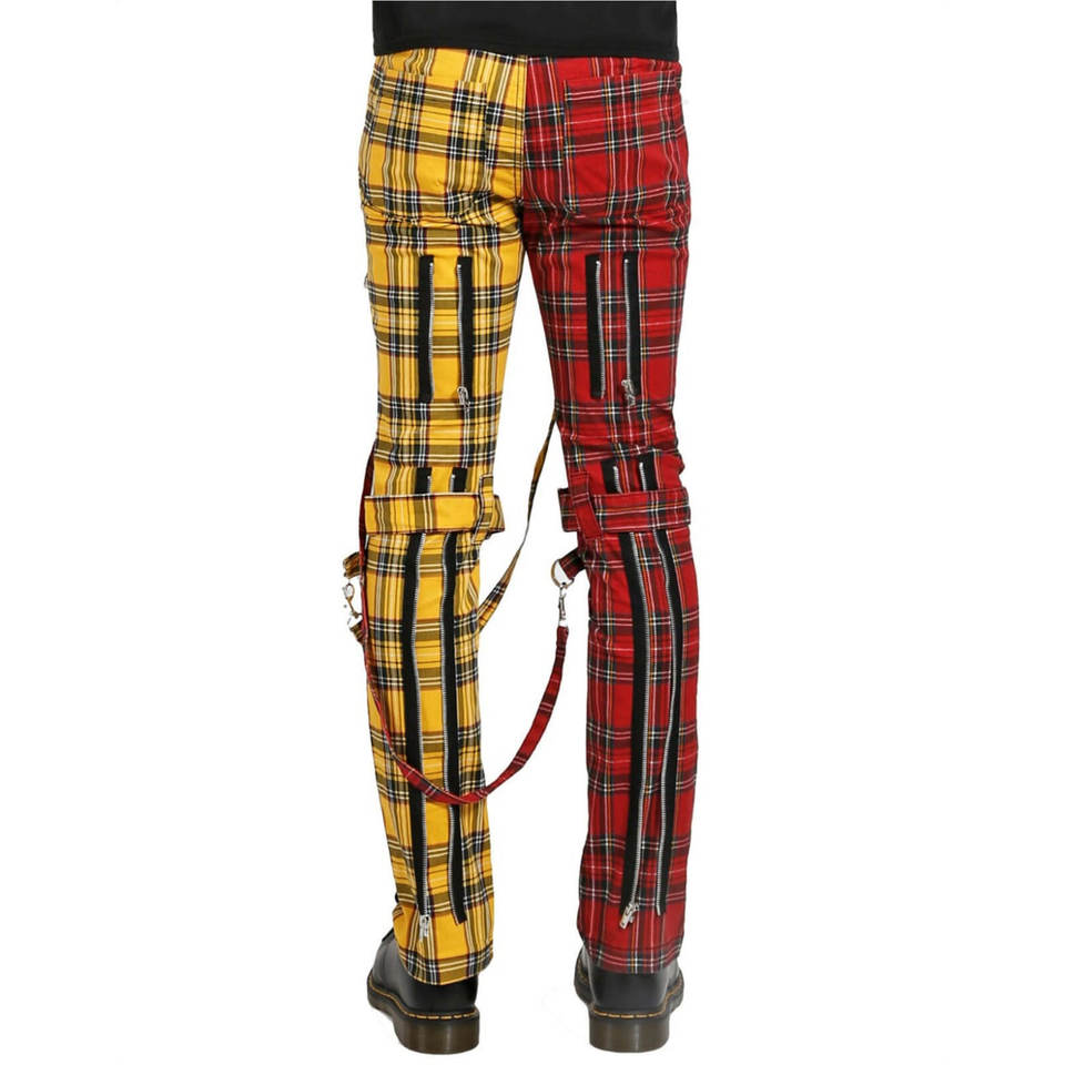 Tripp Gothic Style Bondage Pants Yellow-Red Plaid Punk Split Leg Design 100% Cotton Breathable for Men Women All Sizes Available