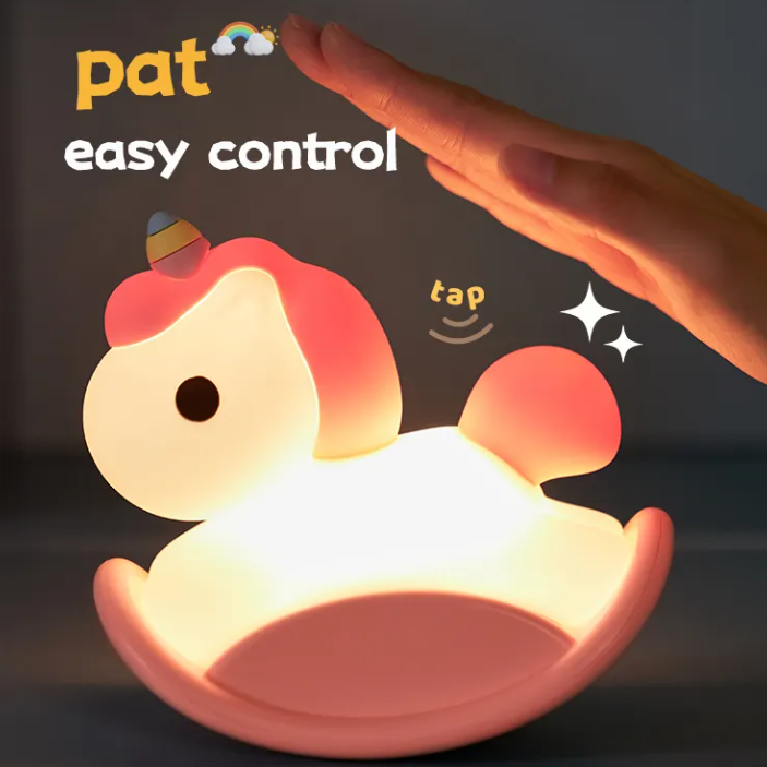 Lampe de troie licorne USB charge trois niveaux de luminosité décompression pat lampe enfants chronométré sommeil atmosphère veilleuse