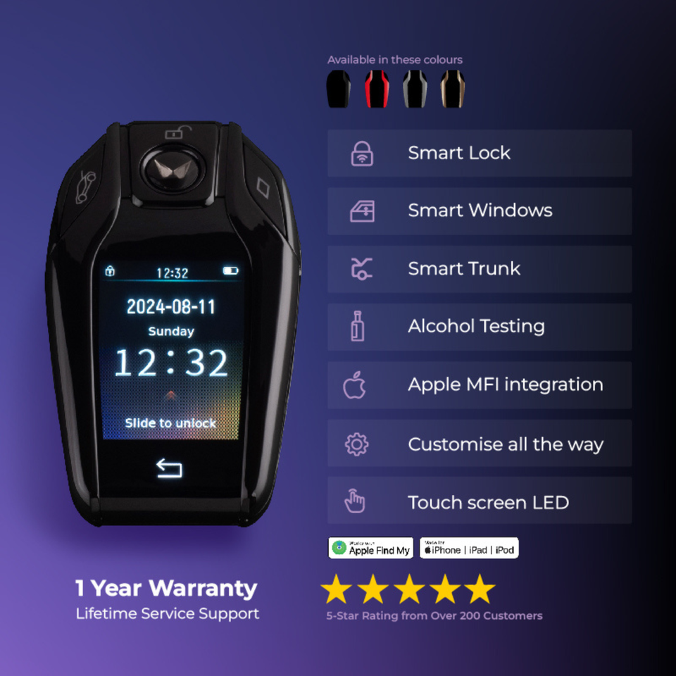 Tron 2.0 (avec détection d'alcool) | Clé de voiture intelligente avec écran tactile, légère | Entrée sans clé | Garantie d'un an | Toutes les voitures