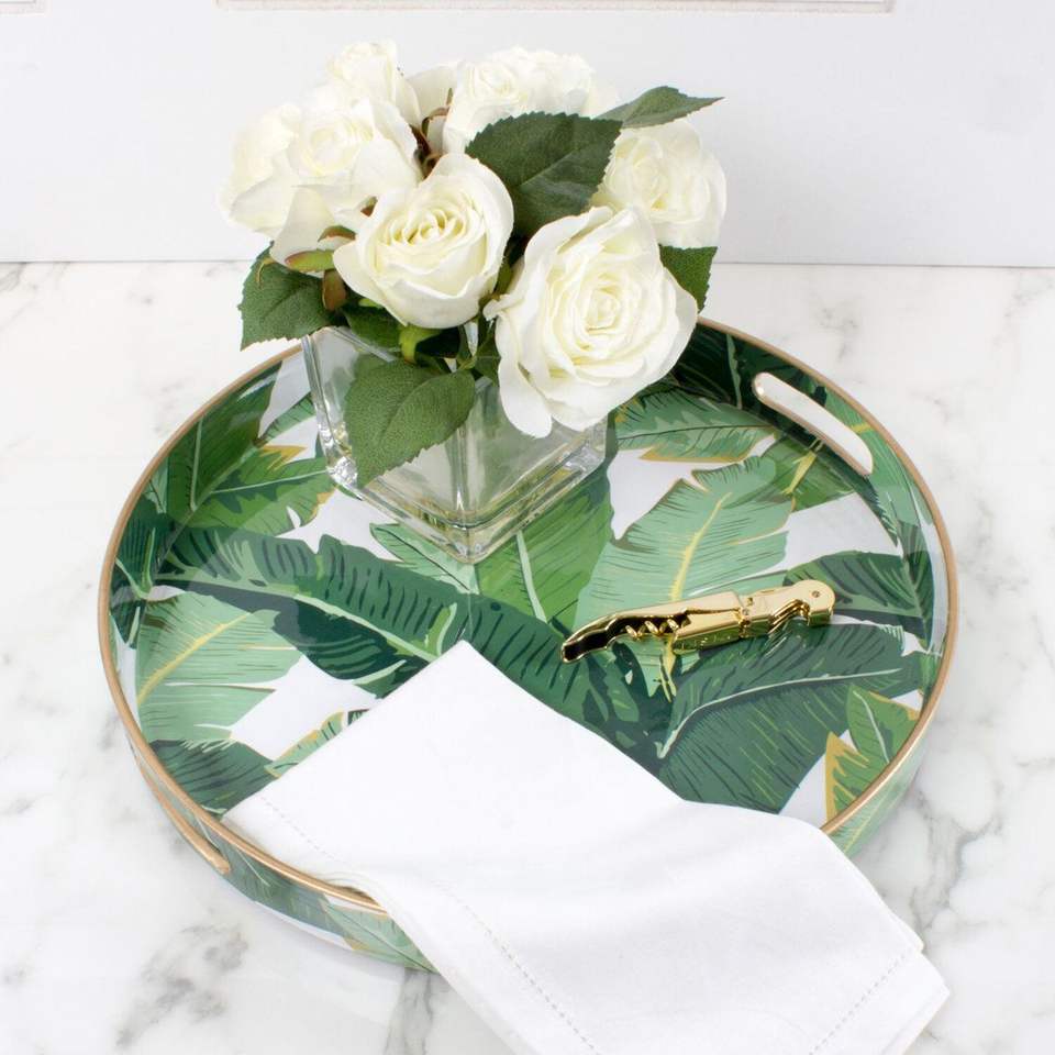Plateau de service rond à motif de feuilles tropicales