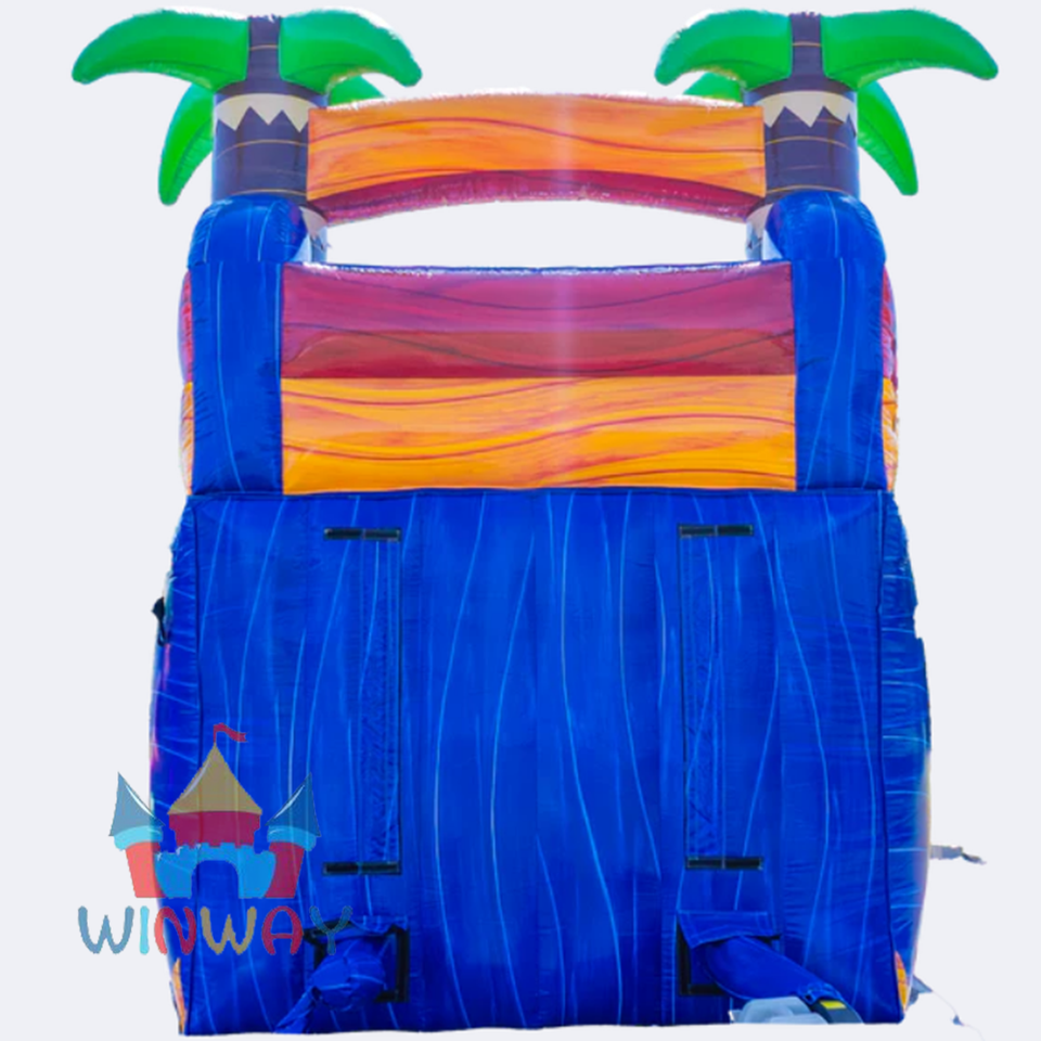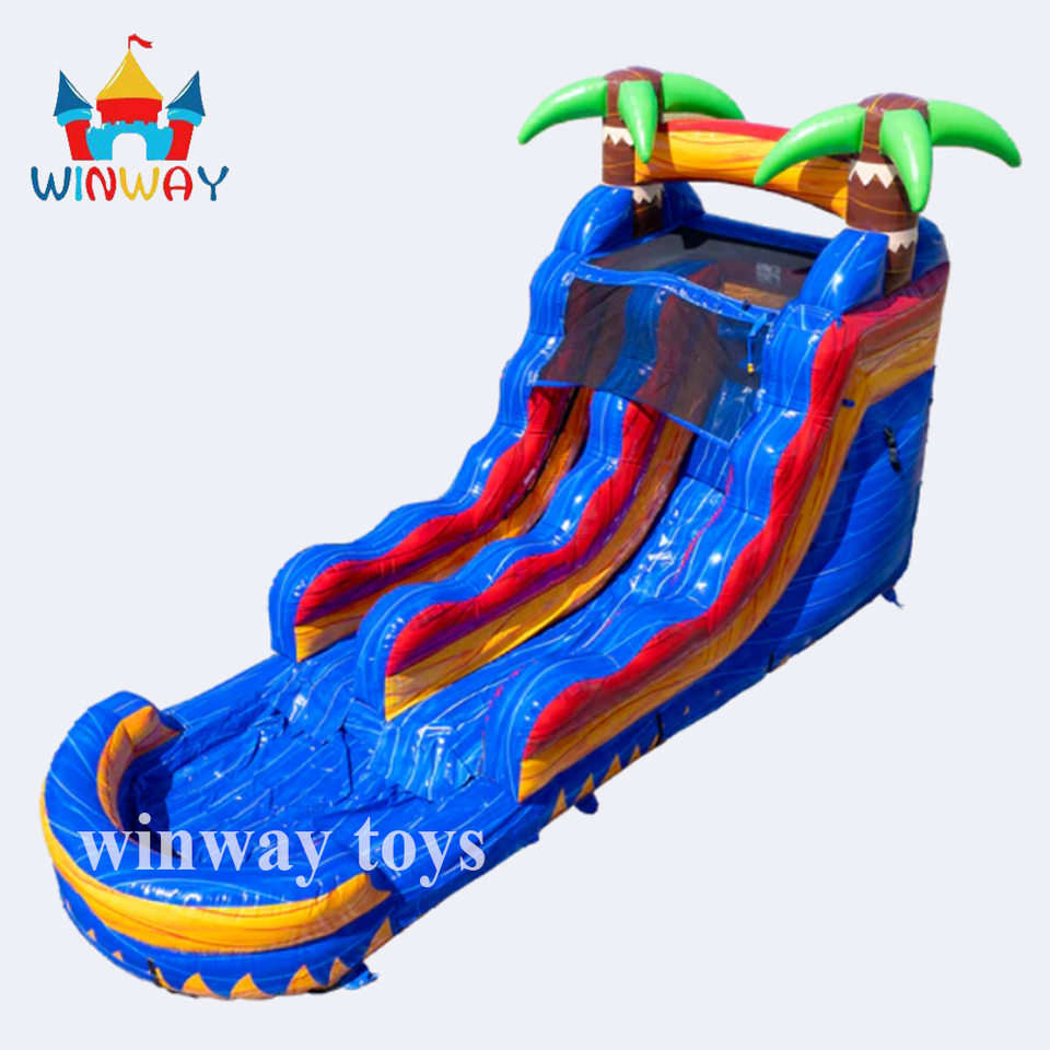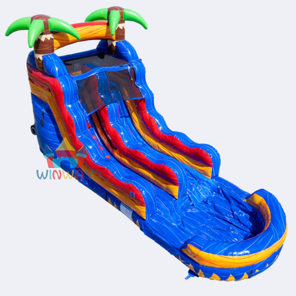 Toboggan gonflable Tropical Palm, maison de rebond extérieure géante pour enfants, équipement de parc aquatique coloré pour arrière-cour/fête