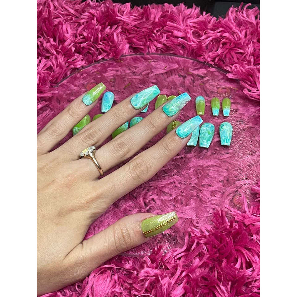 Ensemble de 20 ongles artificiels peints à la main avec accents de chaîne dorée Tropical Paradise (Tailles 0-9)