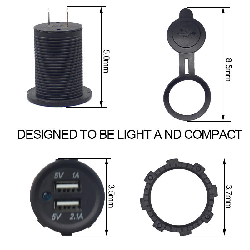 Nom du produit:Chargeur de voiture, bateau, marine à double port 3.1A 2.1A, prise USB 12V