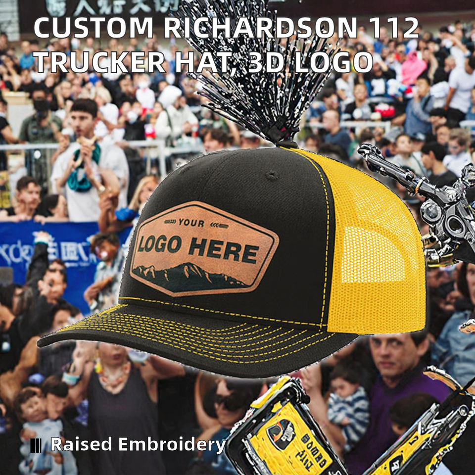 Casquette Trucker 5 Panneaux en Maille avec Visière Courbe, Fabrication Vietnamienne, pour Homme et Femme, Logo Personnalisé, Patch en Cuir