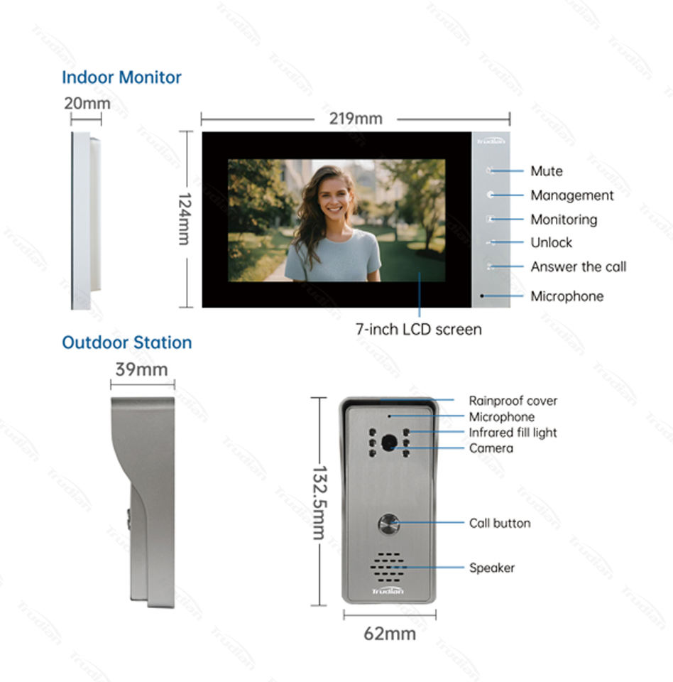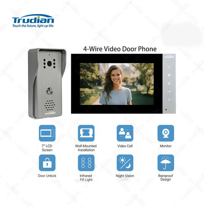 Trudian 7 pouces Smart Videophone caméra sonnette caméra porte téléphone 4 fils analogique interphone vidéo porte téléphone interphone pour Villa