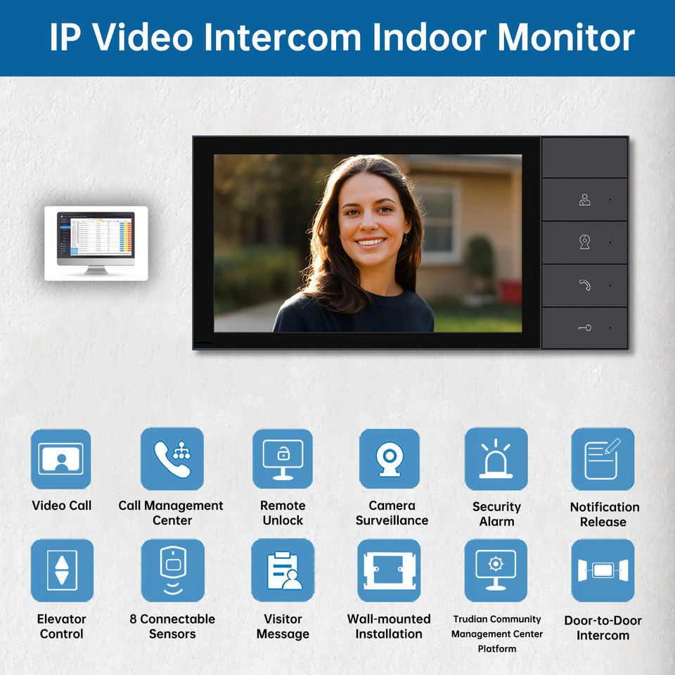 Interphone vidéo à écran tactile Trudian de 7 pouces moniteur intérieur déverrouillage à distance système d'interphone vidéo TCP/IP pour plusieurs appartements