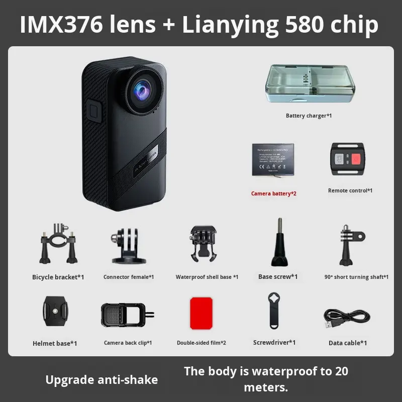 Caméra d'action sportive numérique 4K véritable, zoom 8x, étanche IP68, 20 m, anti-vibration, grand angle, 60 ips, vision nocturne, 50G, WiFi, MicroSD
