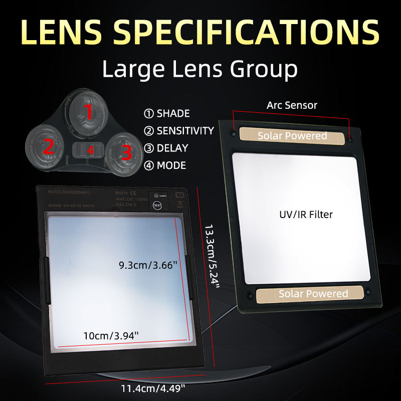 Casque de soudage True Color avec masque de soudeur à obscurcissement automatique solaire, clarté optique supérieure 1/1/2, fenêtre de casque de soudage 100*93MM