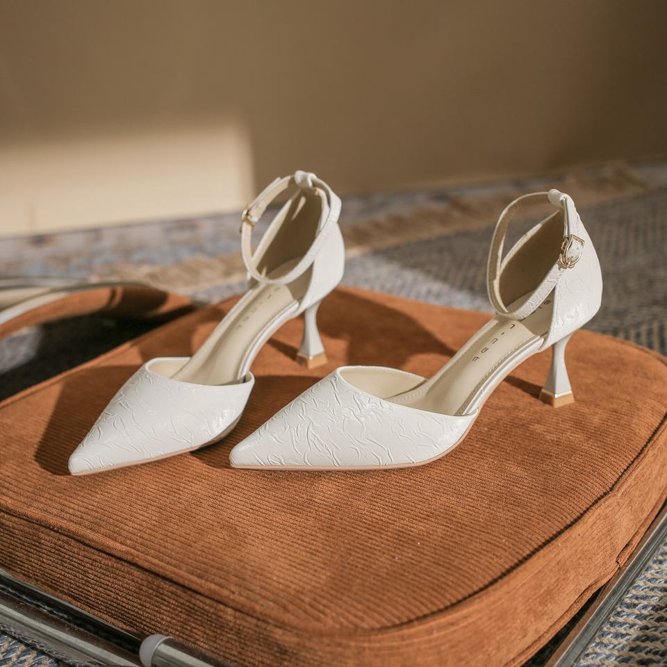 Chaussures de mariage élégantes et sexy pour femmes, en cuir véritable, imperméables, à bride cheville, talon aiguille, antidérapantes