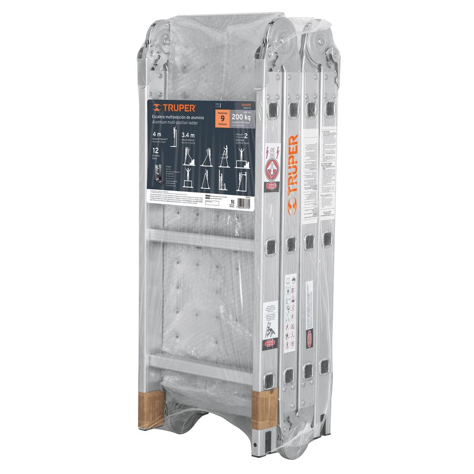 Truper ESMU-112 Telescopic Extension Ladder 12-Step Multi-Position Industrial Design Made of Aluminum Alloy EN131 Certified