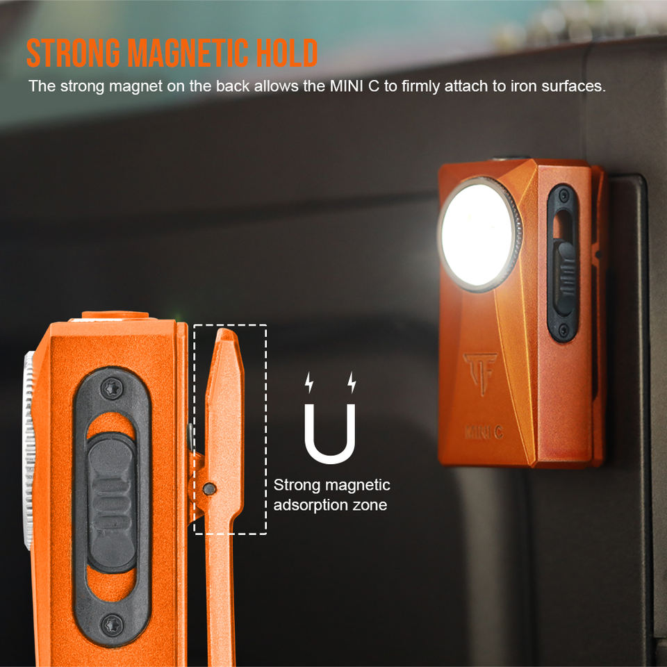 Lampe à clip TrustFire MINIC 800 lumens, 5 en 1, projecteur, lampe torche plate magnétique RGB, rechargeable par USB C, lampe torche porte-clés