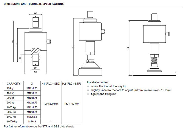 Nominal Load:75- 150- 300- 500- 1000- 2000- 5000- 10000 kg
