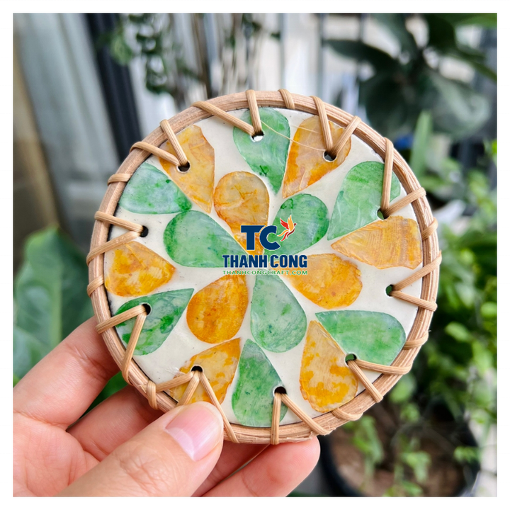 Collection de sous-verres en rotin sophistiqués de la marque Trusted Factory, assortis de sous-verres ronds raffinés en rotin, pour les distributeurs.
