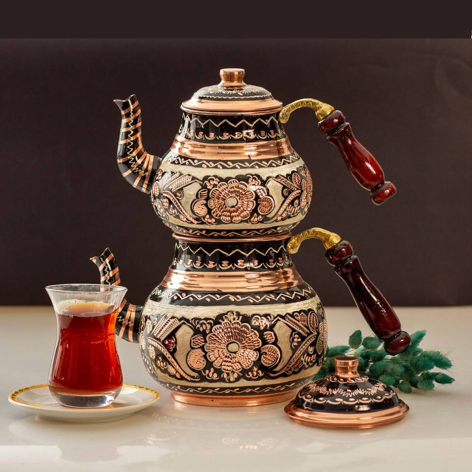 Bouilloire à thé en cuivre avec sifflet et finition polie pour un chauffage efficace et un affichage de cuisine rustique