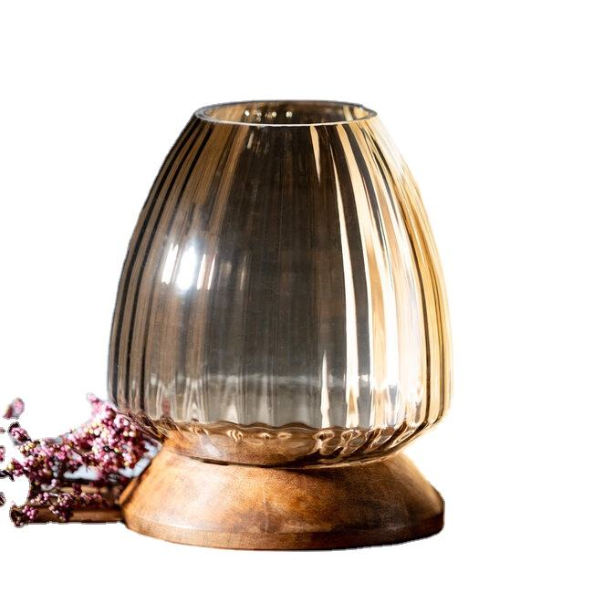 Product Name:AMBER GLASS WOOD PILLAR HOLDER
