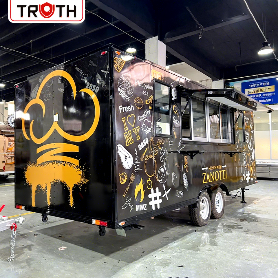 Camion de restauration mobile entièrement équipé Truth Custom 4m pour café, snacks, pizza, tacos, barbecue, hot-dogs, glaces