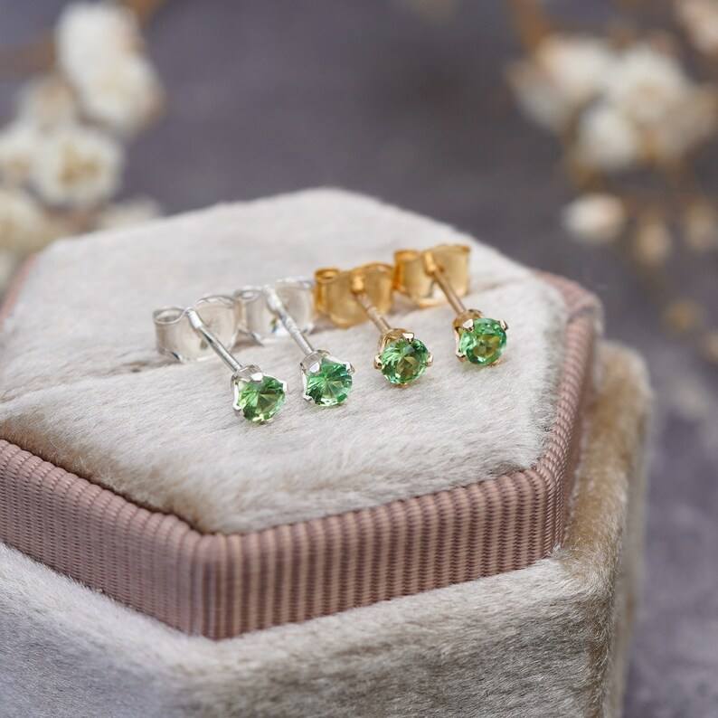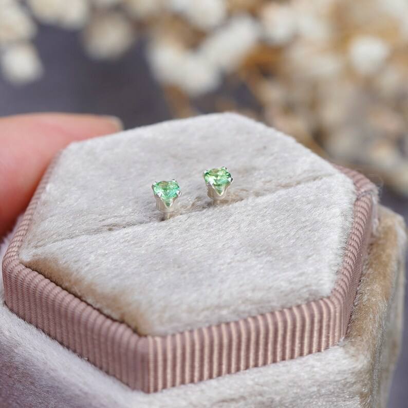 Keyword:Tsavorite Garnet Simple Stud Earrings With Sparkling Silver Stud