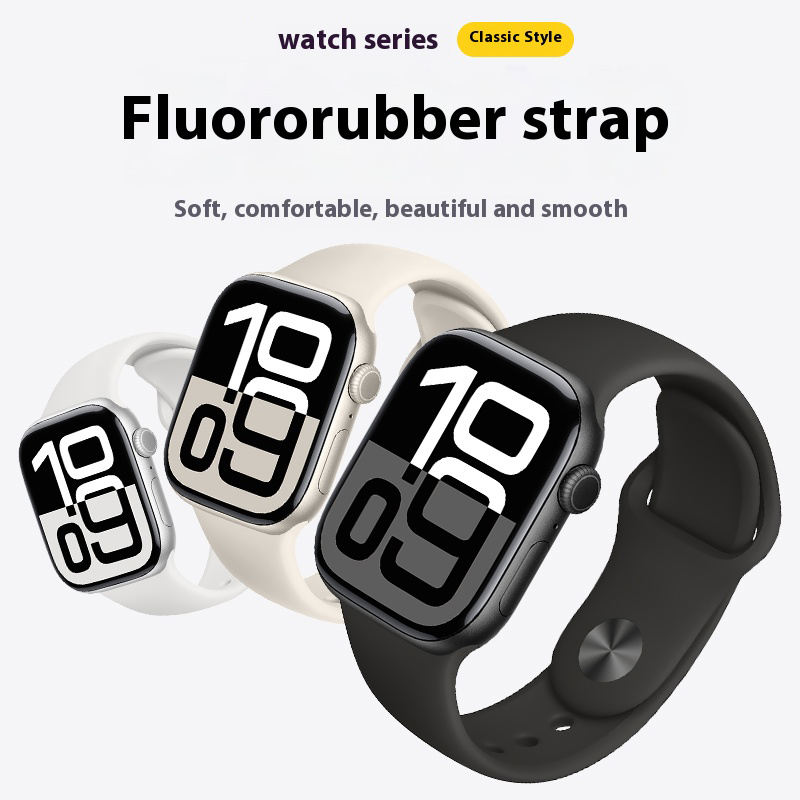 Bande de fluoroélastomère de sport classique Tschick pour bracelets Apple Watch 46 42 49 45 41mm Bracelet Iwatch Series 10 9 7 Se 6 8 Ultra