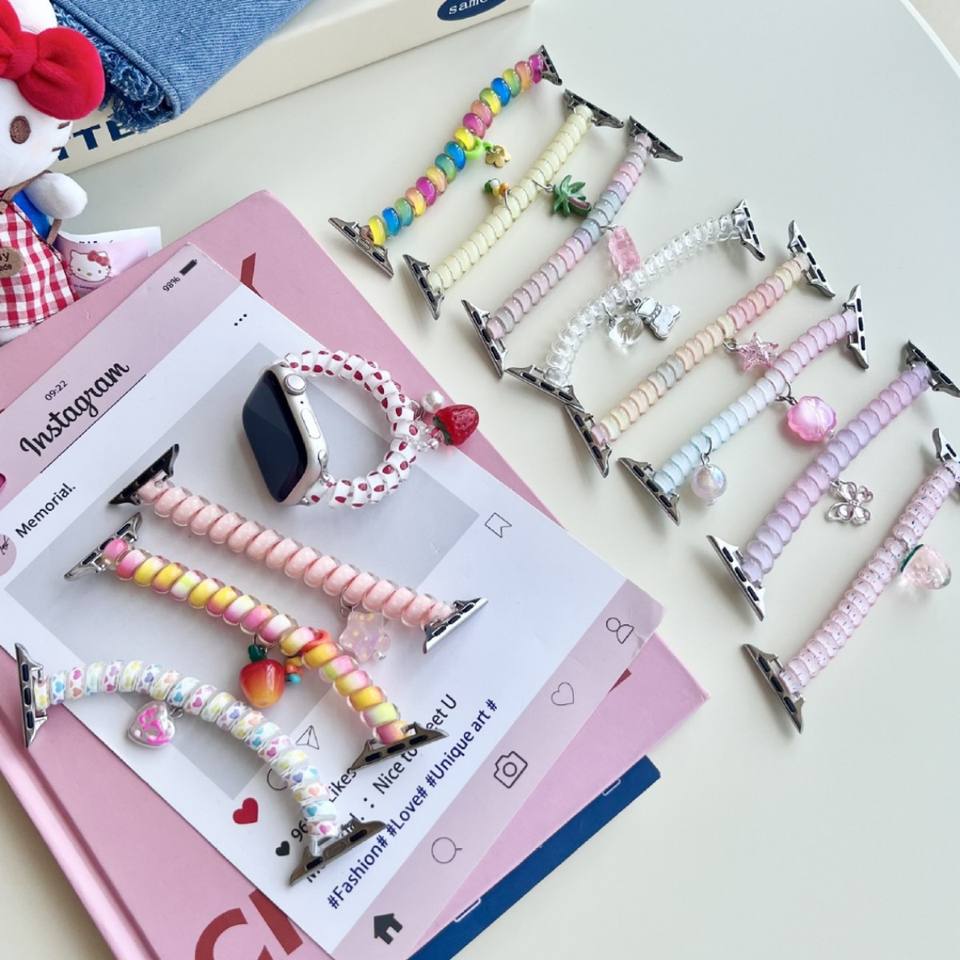 Tschick Colored Elastic Telephone Coil Strap for Apple Watch Band 40/44 41/45mm Ultra Pendant Loop for IWatch S10 42/46mm 9876SE