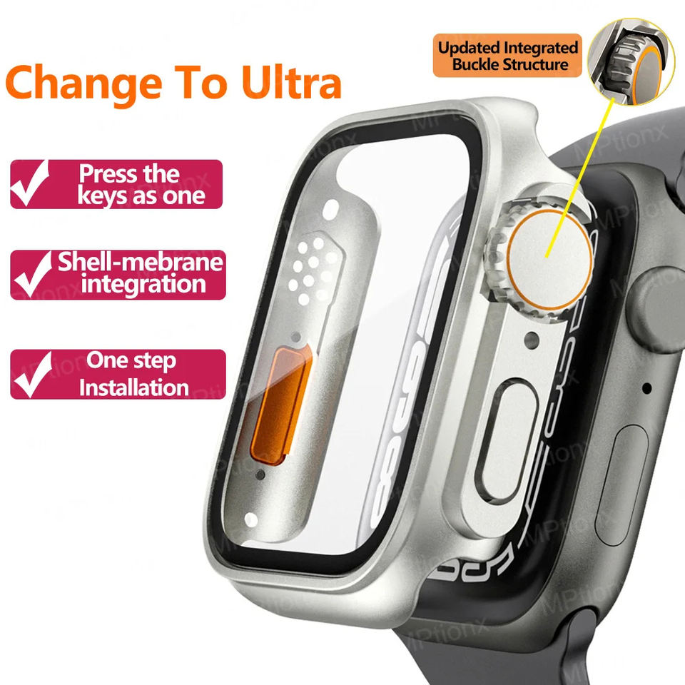 Tschick Glass + étui pour Apple Watch passer à Ultra IWatch Series 10 42mm 46mm housse de protection d'écran mise à niveau vers Ultra