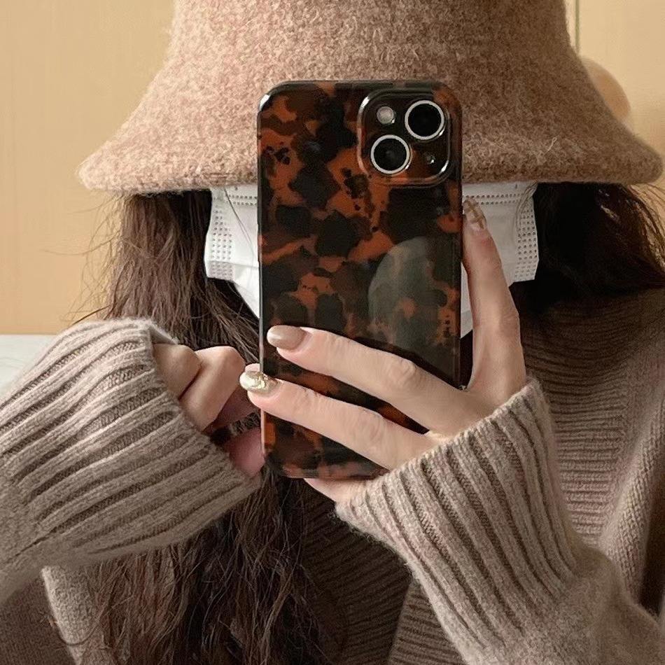 Tschick tortue imprimé léopard motif ambre adapté pour iPhone 14 Pro Max 15 12 13 11 Pro étui de protection anti-chute